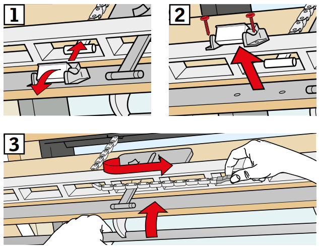 To disengage the motor chain, please refer to the following instructions (the instruction is also present on the KLI instruction, page 20):