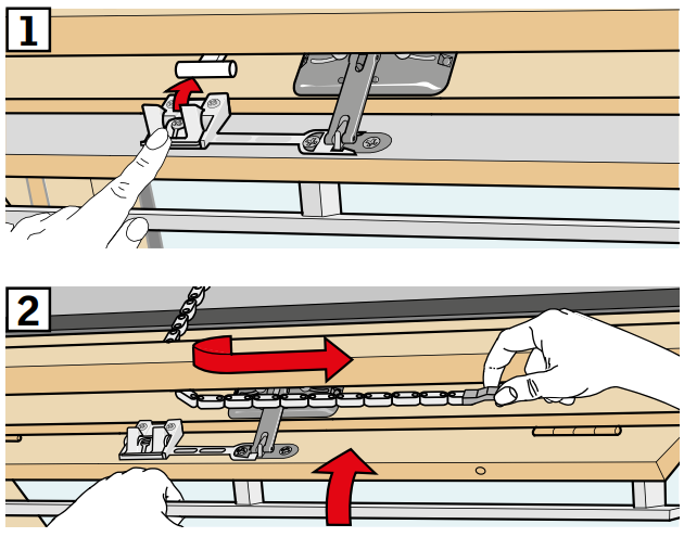 - Fold the chain as shown, and close the ventilation flap of the window to ventilation position