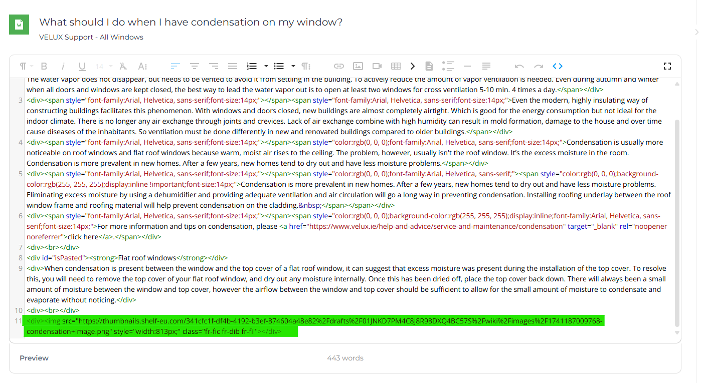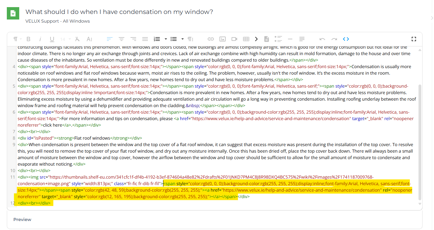 - make sure that the html is simple / you don't copy other data component of the image that are not necessary for the image to show on the article. For example: the image "bold", or some other formats. If they are there, you should remove them manually via Code View. --> see example below.